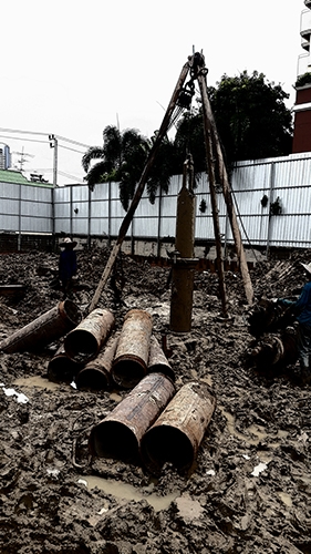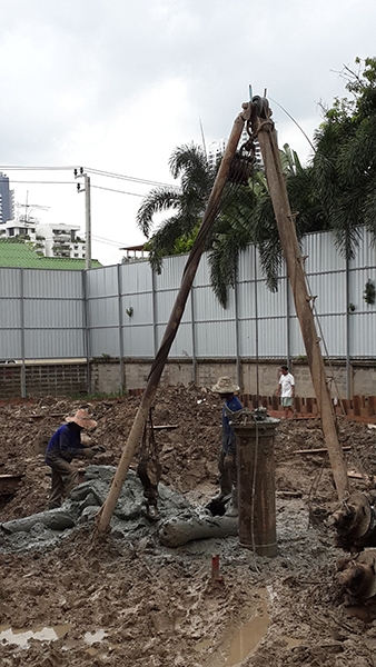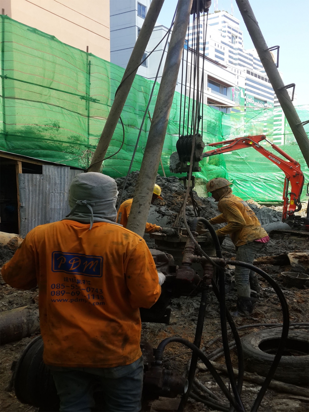 เสาเข็มเจาะ ม.ราชภัฏสวนสุนันทา เจาะได้ลึกประมาณ 19.5-20 ม.
